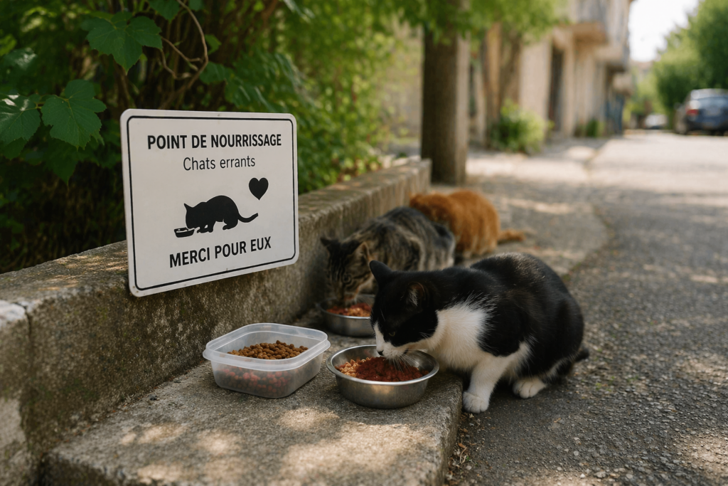 La mission sur un point de nourrissage consiste à nourrir les chats errants, assurer une surveillance régulière de leur état de santé, et intervenir si nécessaire par la capture pour soins, stérilisation et identification.